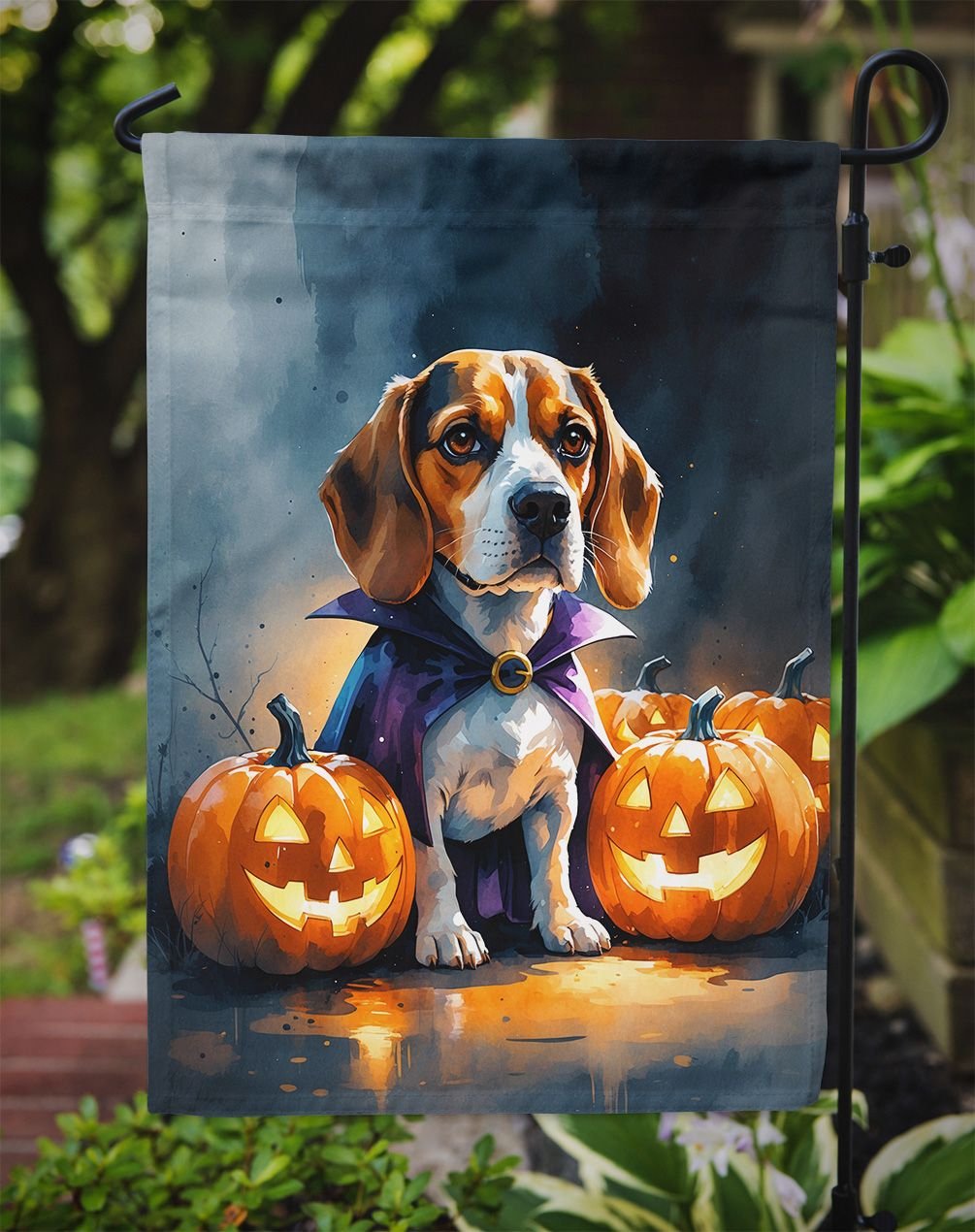 Garden Flag featuring breed specific Beagle artwork. Celebrate Halloween with this Halloween Garden Flag. Enhance the beauty of your garden, patio, or yard with Caroline's Treasures Decorative Garden Flag, proudly made in the USA. Crafted from two pieces of thick, double-sided polyester fabric, this 2-ply garden flag is designed to withstand various weather conditions, making it water-resistant and weatherproof. Featuring correctly readable words on both sides, this garden flag offers a delightful visual experience from any angle. With its heavier weight, it stands out among other garden flags, ensuring stability and durability even in wind, rain, and snow. Measuring approximately 11 1/4 inches by 15 1/2 inches, this flag allows you to personalize your outdoor decor. It comes with a 1 1/2-inch sleeve sewn in, allowing easy attachment to any standard garden flag stand or garden size porch hanger (sold separately). Make a statement in your outdoor space with Caroline's Treasures Decorative Garden Flag, a vibrant and high-quality flag that adds color and personality to your surroundings. Proudly made in the USA, it's a symbol of quality craftsmanship and attention to detail.