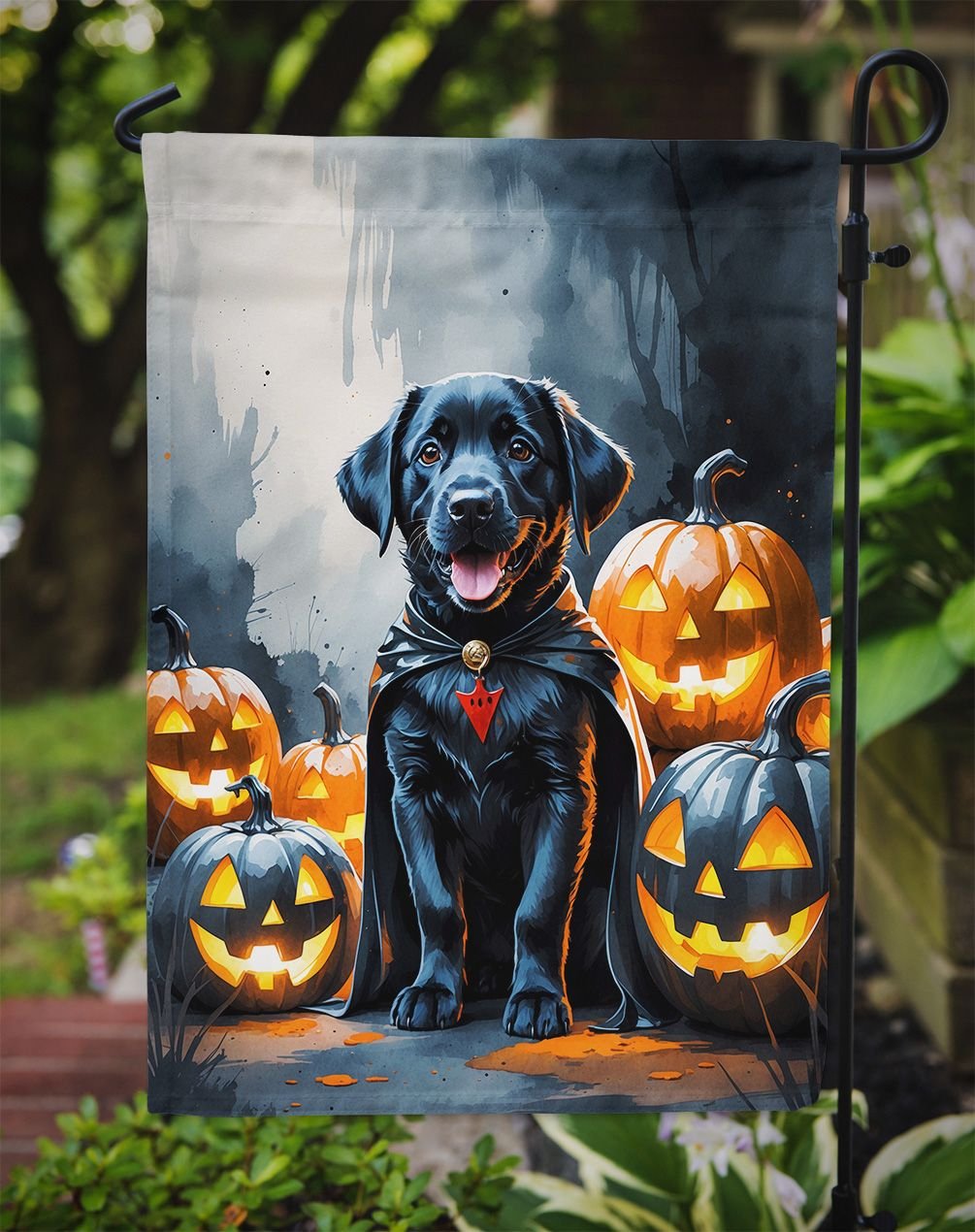 Garden Flag featuring breed specific Labrador Retriever artwork. Celebrate Halloween with this Halloween Garden Flag. Enhance the beauty of your garden, patio, or yard with Caroline's Treasures Decorative Garden Flag, proudly made in the USA. Crafted from two pieces of thick, double-sided polyester fabric, this 2-ply garden flag is designed to withstand various weather conditions, making it water-resistant and weatherproof. Featuring correctly readable words on both sides, this garden flag offers a delightful visual experience from any angle. With its heavier weight, it stands out among other garden flags, ensuring stability and durability even in wind, rain, and snow. Measuring approximately 11 1/4 inches by 15 1/2 inches, this flag allows you to personalize your outdoor decor. It comes with a 1 1/2-inch sleeve sewn in, allowing easy attachment to any standard garden flag stand or garden size porch hanger (sold separately). Make a statement in your outdoor space with Caroline's Treasures Decorative Garden Flag, a vibrant and high-quality flag that adds color and personality to your surroundings. Proudly made in the USA, it's a symbol of quality craftsmanship and attention to detail.