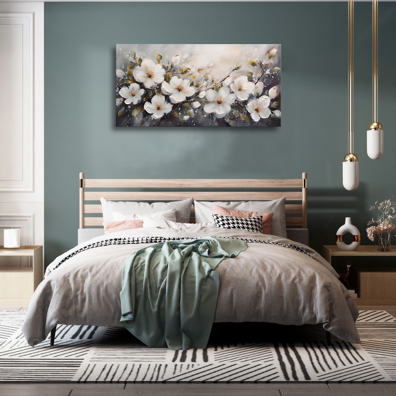 2.White Floral Canvas Wall Art for Bedroom Ready to Hang: Each canvas print has been stretched onto a solid wood frame,wrapped in a gallery,with hooks and accessories that can be hung at any time.