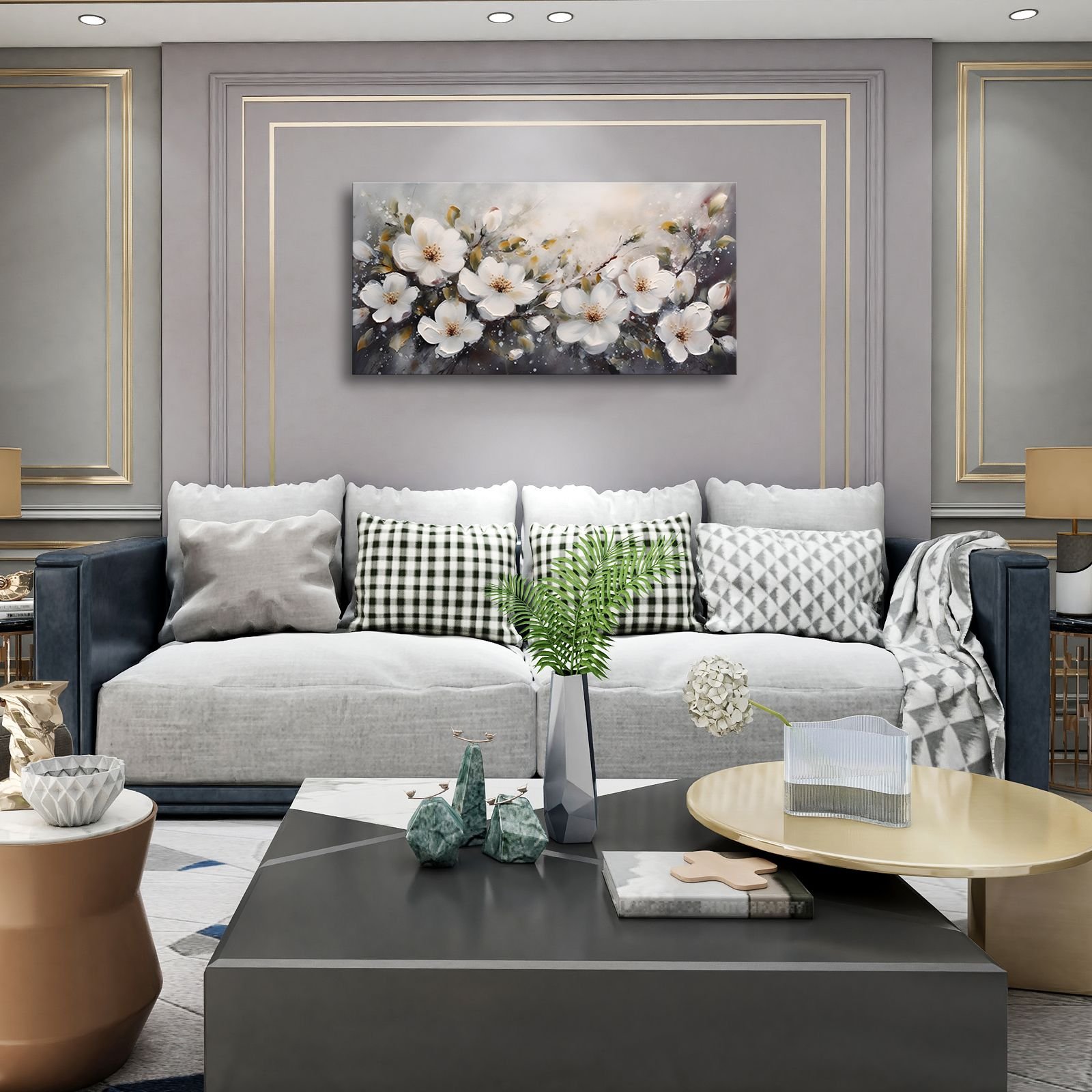 Home > Large Flower Painting Wall Art for Living Room White Flower Picture Wall Decor for Bedroom Gold Leaf Floral Wall Art Prints Framed Artwork for Bathroo