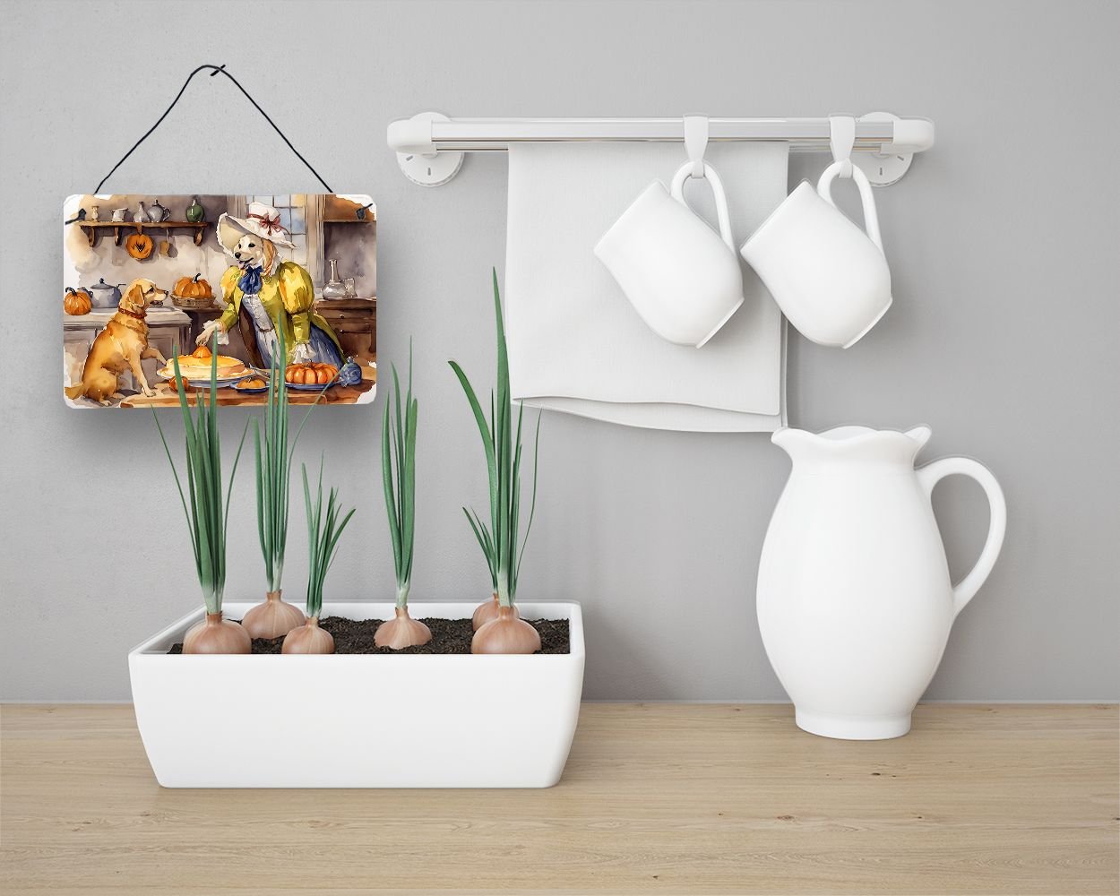 NEW Yellow Lab Fall Kitchen Pumpkins Wall or Door Hanging Prints Aluminum Metal Sign Kitchen Wall Bar Bathroom Plaque Home Decor, 8HX12W, Multicolor