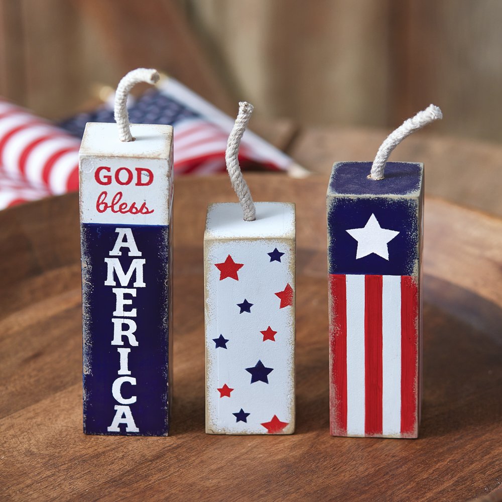Rustic Set of Three Decorative Firecracker Blocks for Home Decor - Handcrafted Wooden Firecracker Decor