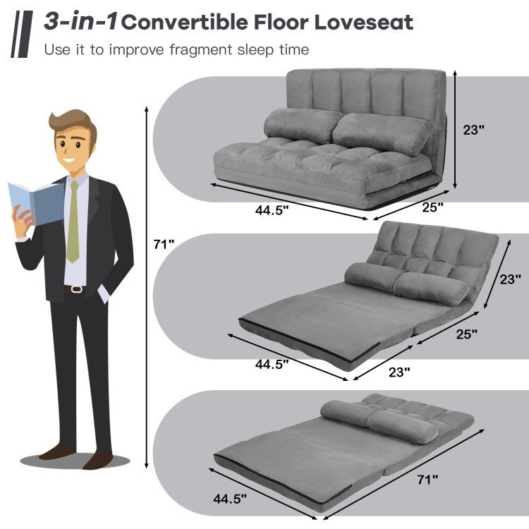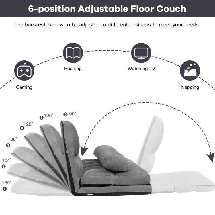 Faux Suede 5 Tilt Foldable Floor Sofa Bed Detachable Cloth Cover in Grey