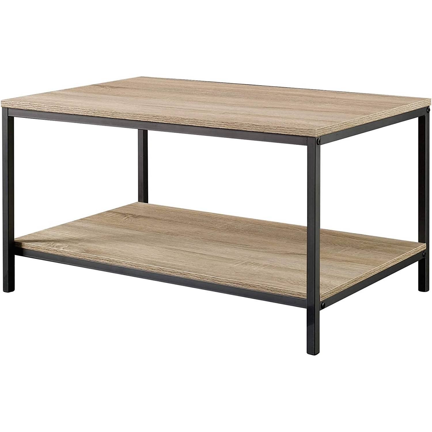 Give your home a chic industrial update with this Modern Industrial 2-Tier Coffee Table in Rustic Light Oak Wood Finish. Its spacious tabletop provides you with room for magazines, mail, coasters and of course your cup of coffee. It also features a large, lower open shelf for additional storage and display. Constructed with a durable, black metal frame and finished on all surfaces in Charter Oak, this stylish coffee table will complete the look of your living room.