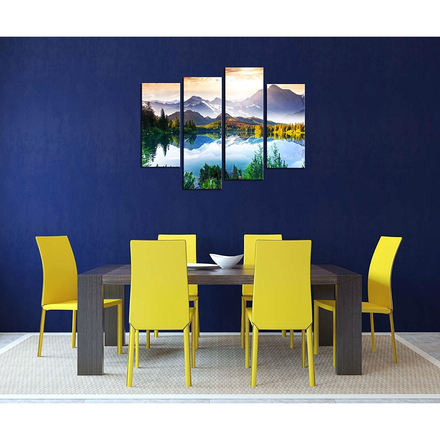 Mountain Forest Lake 4-Panel Wall Art Canvas Print Picture
